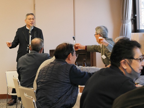 ![]() 岡部幹事より新年懇親会開会の挨拶 |