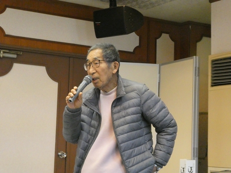 ![]() 岡部幹事より新年懇親会開会の挨拶と進行内容説明 |
