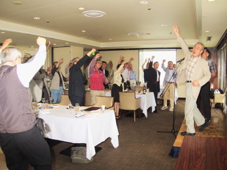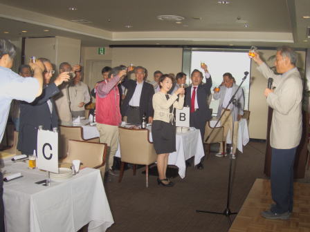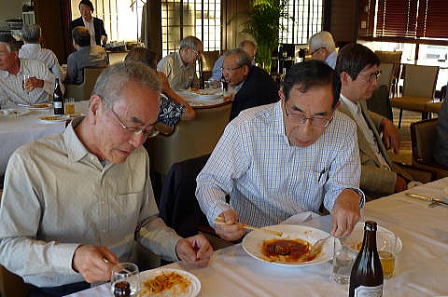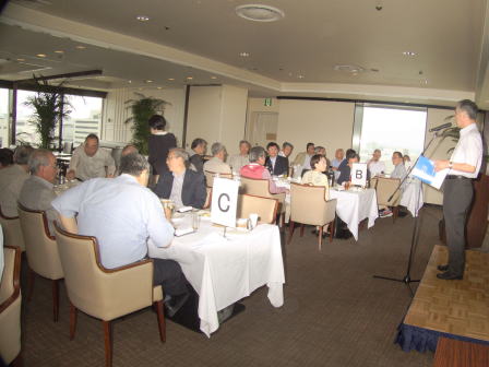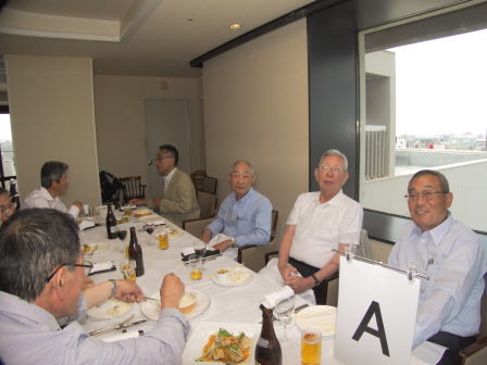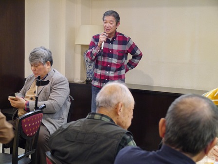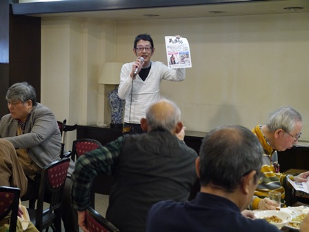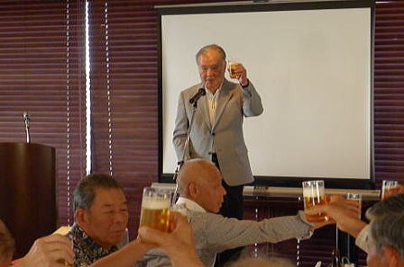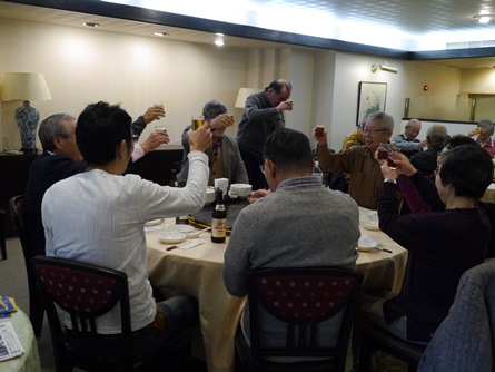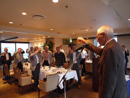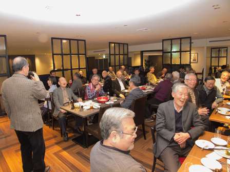 総会終了後懇親会へ移行し、新規会員となられた2名の方の挨拶、松原章さんの乾杯の音頭で始まりお互いの近況報告や昔話に話を咲かせ盛況の中、健康を祈願して岡山滋さんの三三七拍子で締めて散会となりました。 (レポーター 石丸盈) |