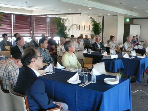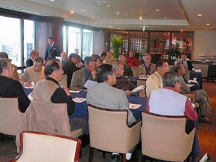| 5月22日(金) 夕刻福岡西地区総会と懇親会が26名の参加を得て、ホテルクリオコートで開催されました。清成幹事より松九会総会の報告があり、福岡西地区の平成20年度の活動報告と 平成21年度活動計画を詳細に発表、具体的なアイディア募集など活発な意見交換を行いました。その結果、9月に『糸島手作りハム研修会』と『年末懇親会』を中心に活動を進めることになりました。又 会員数が急増する予想がされており、西地区運営の将来構想が提案されました。