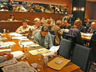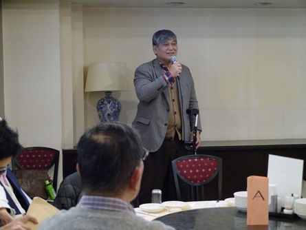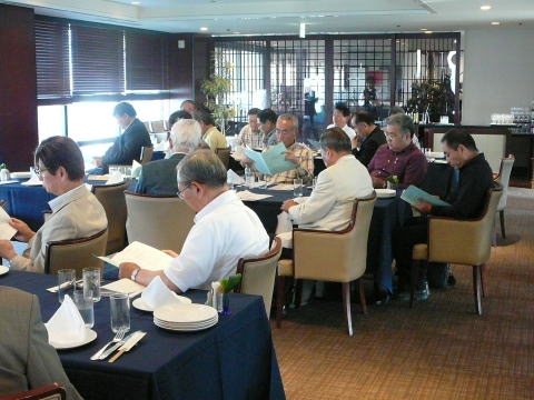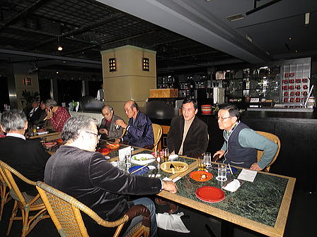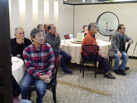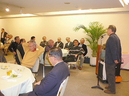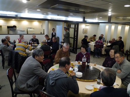 | 12月11日、福岡西地区忘年懇親会を『平和楼』にて会員20名で開催しました。清成幹事より、今年の活動経過のポイントを報告し、来年度の積極的な活動参加を呼びかけました。その後、今年の新会員4名の自己紹介と近況報告。引き続き峰さんの発声で乾杯し懇親会がスタートしました。魚釣り、登山、家庭菜園、ゴルフでの自慢話や一部の方は健康管理の話題、PCCの近況等この一年の多くの話題に花を咲かせました。後半はカラオケも加わり楽しい時間はすぐに過ぎてしまい、名残を惜しみながら光田さんの締めで終わりました。今回は幹事の用意したお土産を手に散会しました。宮尾重治レポーター |