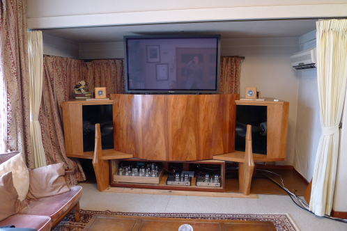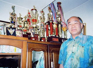 数々のトロフィーに囲まれて |