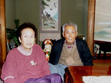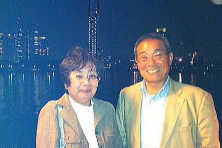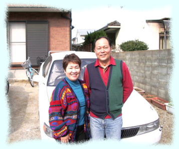 職場結婚の奥様(旧姓大田鈴子さん)と自宅前にて⇒