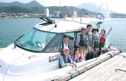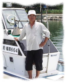 | 坂田さん所有の遊漁船上にて |