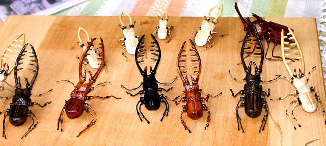 竹細工の作品(かぶと虫・くわがた虫) |