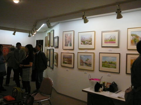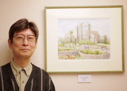 藤吉さんの「写仏画」を紹介します。写仏画は国宝等の仏画を墨と顔彩で模写するもので、基本となる仏画を描くサイズにコピー 鉛筆等で写取りその上に薄い和紙を被せて墨で仕上げて行きます。彩色なしを白描画と言ってこれだけでも作品になるそうです。(一枚完成させるのに2~3ヶ月)最初は絵の基本になるからと言われて始められたそうで、もう十数年、師匠の許可も出て作品を他に贈れる程の実力だそうです。他に水彩画等絵画三昧の日々との事で 奥様は外でやる趣味が好ましいようです(笑)。油絵をやっている先輩との二人展の計画もあり乞うご期待。(レポーター 石丸 盈)