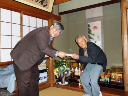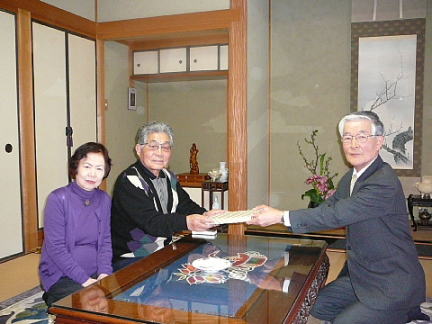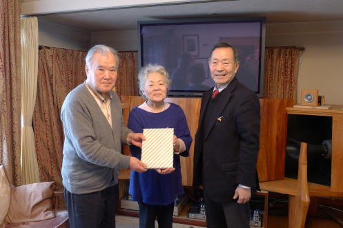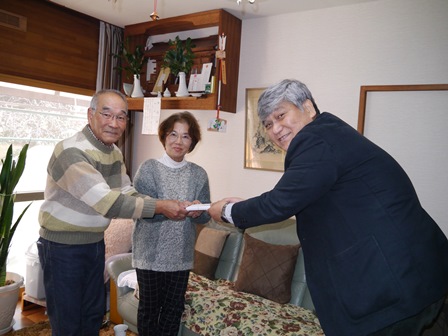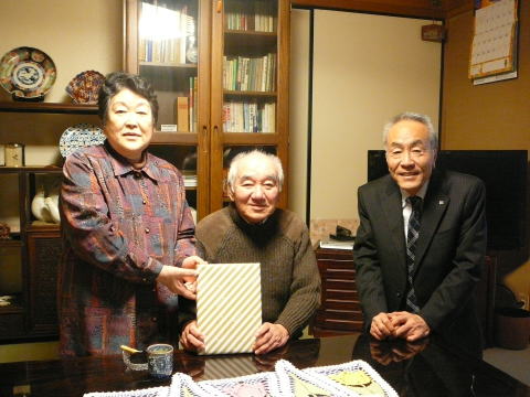 | 1月19日に金婚式を迎えられた内藤 司さん宅を、松九会からのお祝いの品を持って地区幹事:清成さんに同行して訪問。内藤さんは今年78歳になられるそうです。九松には38年に入社され、以来人事・総務で活躍されましたので入社時にお世話になった方も多いと思われます。関係者の安否や昔話に