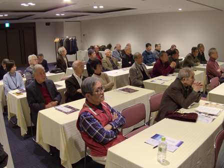 12月11日 福岡市の天神テルラにて36名の参加のもと、「葬儀」に関するセミナーとの二部構成にて忘年会を開催しました。セミナーは西日本典礼の柴岡葬祭ディレクター(女性)より葬儀に関しての考え方や事前準備等々を一時間にわたり講演して頂きました。今流行の家族葬や費用の問題、誰々に連絡するのか等々 今迄簡単に考えていた葬儀がこんなにも雑多で煩わしいものか理解でき、死ぬのも一苦労かなと感じた次第です。考えてみればお互いに家族全ての交友関係、連絡先等把握している訳でもありません。今からでも十分間に合うと思いますので皆さんも少しずつ準備されたら如何でしょうか。葬祭場では事前相談も受付けているとの事です。話の種になるかと思いますので一度説明を受けられたら如何でしょうか。セミナー終了後は暗くなった雰囲気を一遍、全員での記念撮影を行い懇親会へ移行。立石地区委員の司会のもと、清成幹事の事前セミナーの所見を交えた挨拶、参加者最長老の小金丸さんの乾杯の音頭で始まり、新会員の佐伯さん・西野さんの自己紹介を挟みながらお互いの近況や情報交換等々、バイキング方式での和やかな雰囲気での歓談後、最後に峰さんの挨拶で散会となりました。