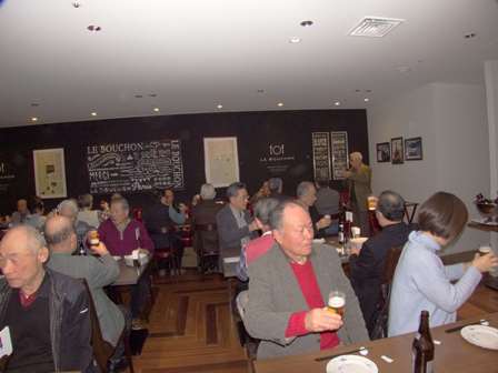 | 12月3日、福岡西地区忘年懇親会を福岡天神の『テルラホール』で会員34名の参加で開催しました。 清成幹事より、今年の会員増加や活動経過のポイントを報告し、来年度の積極的な活動参加を呼びかけました。 その後、光田さんの発声で乾杯し懇親会をスターとしました。 新会員の自己紹介や近況報告後 魚釣り・登山・家庭菜園・ゴルフ等の話題、9月に実施した手造りハムの行事・PCCの近況などこの一年の多くの話題に花を咲かせました。 楽しい時間はすぐに過ぎてしまい、名残を惜しみながら坂上さんの締めで解散となりました。 |