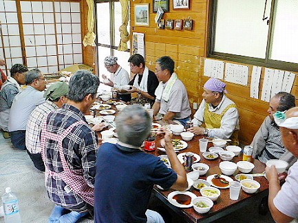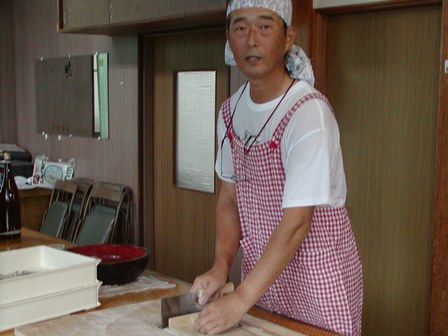 | 9月29日糸島市二丈町一貴山の山中にある「そば処 山の家」に於いて、26名の参加のもと「そば打ち」体験にチャレンジしました。粉に水を加えて捏ねることから始まり、棒での延ばし、幅切と一連の工程を約30分掛けてポイント(要領)指導を受けながら無事終了。慣れないと結構な労力を要しますが、要領さえ覚えれば誰にでも出来る作業と感じました。今日の体験を通じてそば通が増えるか 又 自らそばを打ち家庭サービスに努める方も出て来るかも知れません。そば打ちは特別な道具を購入する必要もなく、家庭にあるもので十分間に合いますので、一度体験されて家庭での実践をお薦めします。その後 試作品を店の方に茹でて頂き試食すると共に、バーベキューに舌鼓を打ちながら参加者の親睦を深め楽しい一時を過ごし散会となりました。 店で作って頂いたそばをお土産としてお持ち帰り頂きましたが、皆さん自作として渡されたのでしょうか? 何れにしろ楽しい趣味に繋がる体験でした。(石丸 盈レポーター) |