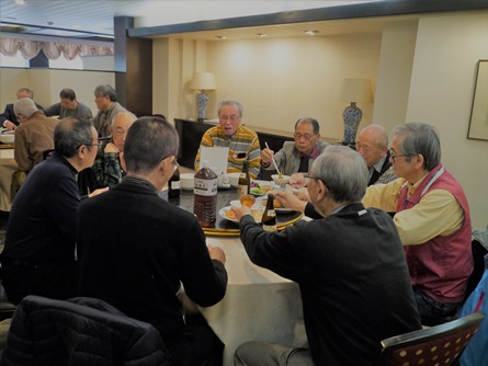 引き続き山形展俊さんの発声で乾杯し懇親会がスタート。それぞれに玄界灘(自宅裏の海)で船釣り、登山、福岡の史跡探訪、家庭菜園や健康情報の交換等この一年の多くの話題に花を咲かせました。会の後半からはカラオケも加わって盛会裏に終わりました。帰りのJR車中まで話題が続いておりました。宮尾重治レポーター |