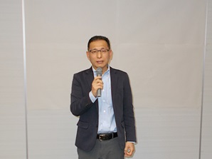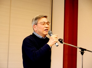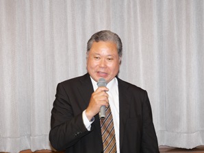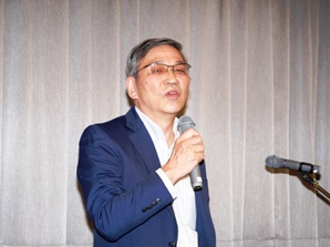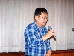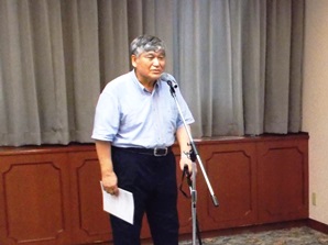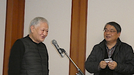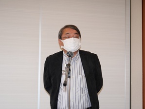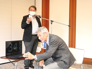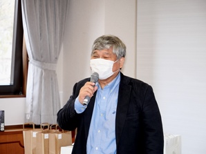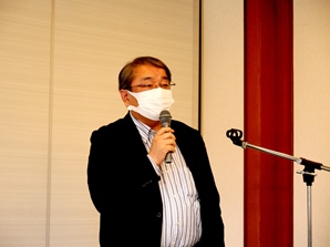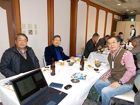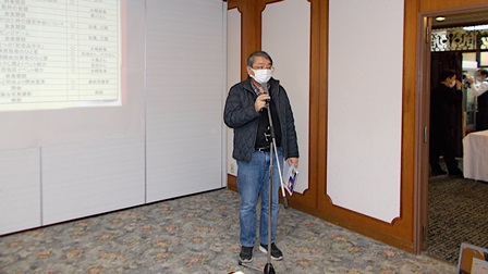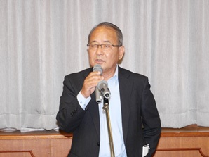 ![]() 森地区委員(後ろ向き)と水﨑幹事より開会挨拶 |