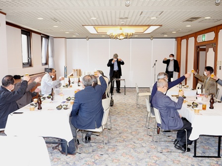 ![]() 水﨑幹事の発声で「乾杯!」 |