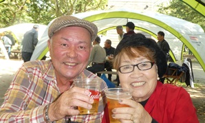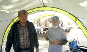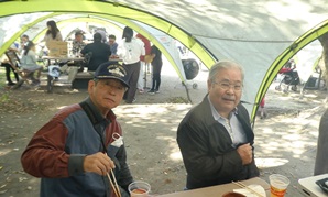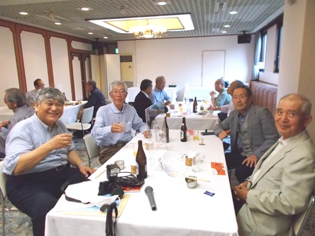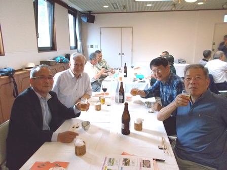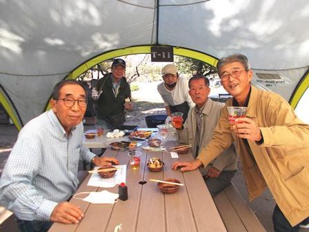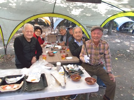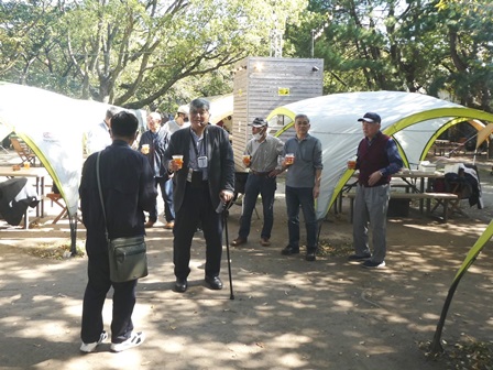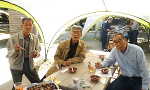 柴田(恭)さんから乾杯の音頭を取って頂き、和やかにスタートしました。4つのテントに分かれ近況や九松時代の思い出話しに花が咲き、また、中村(秀)さんは奥様同伴の