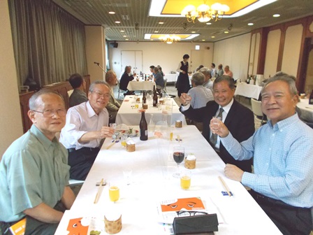 参加で、より楽しいひと時を過ごされました。最後に北東地区から参加の梶山さんの中締め、そして、記念撮影と盛会の内にお開きとなりました。 (レポーター