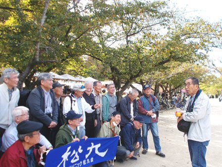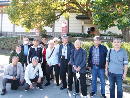 | 澄み渡る秋空の下、10月29日(土)、 西地区秋季懇親会を西地区名所散策と懇親会の2部構成で行いました。 先ずは、福岡市中央区舞鶴公園内の「鴻臚館跡展示館」に午前11時、17名が集合しました。その中で、6年前、南東地区から西地区に転入された齋藤(裕)さんが、