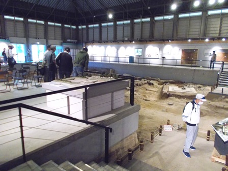 ![]() 鴻臚館跡展示館見学に参加の皆さん (中央の見事な白髪の人が齋藤(裕)さんです) |