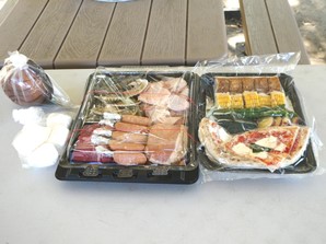 中締めは谷副会長にお願いし、あっという間の楽しい牡蠣小屋パーティーでした。最後に全員で記念撮影をし、各自「牡蠣飯」のお土産をもらって散会しました。(これまた、美味しい牡蠣飯でした。岡部談)
